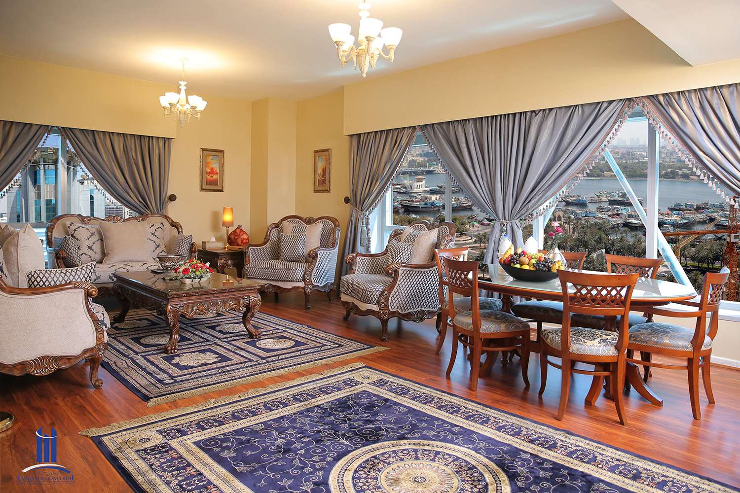 Emirates Concorde Hotel & Suites is located in the heart of Dubai City, on Maktoum Street. The Hotel Offers great panoramic view over the famous Dubai Creek. Only a short drive from Dubai International Airport, Dubai Creek, Golf & Yacht Club, the gold and spice markets, major shopping & leisure centers. The Hotel offers excellent services and modern facilities, a rewarding choice for business and leisure travelers. It also has a dental clinic, shopping facilities, and a flexible function space for over 300 persons. The Concorde staff will happily help you arranging a Dubai city tour, shopping tour, deep sea fishing, Dhow cruise, desert safari, or an adventure tour with the best tour operator in Dubai.