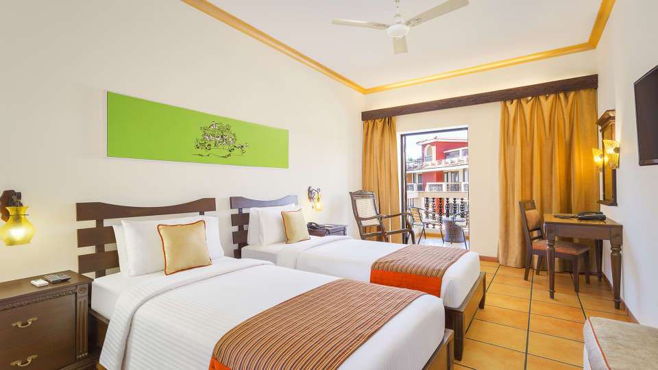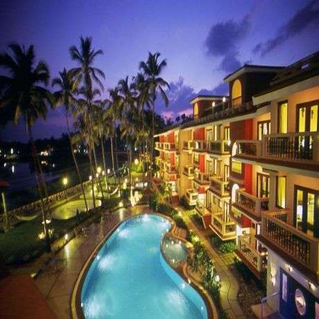 Overlooking the ebb and flow of the scintillating Baga creek, you will find Goa in a nutshell at Lazylagoon, nestled amidst salt pans. Around the lush landscape, you will find a piece of Goa in every corner; be it the quaint fishing spot on the promenade, the old era Culvets got in especially from Cancona creating picturesque spots around the property. The lavish suites, garden rooms & superior rooms are scattered across seven buildings, each named after an indigenous flower of Goan soil. The rooms are modern, yet classy, with an ambient Goan mood to each of them. Mario Miranda inspired caricatures decorate the walls with light-hearted humour; the Spanish influence on the square-tiled flooring is warm and welcoming; and the Portuguese ceilings with wooden beams are sure to instantly captivate your eyes. 'Tavern', 'Balcao' and 'Ola' will help you savour a drink and good old Goan delicacies as you soak in the evening sun.
